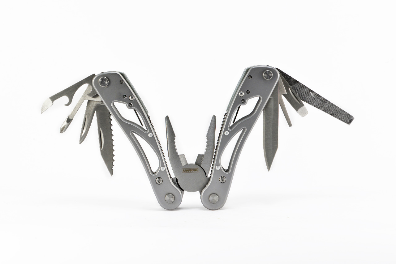 - Needlenose Plier, Regular Plier, Wire Cutter, Knife, Scissors, Rope Cutter, Bottle O pener, Slotted&Phillip Screwdriver, Can opener, Needle, Wire Stripper, leather Punch, large slotted screwdriver, Nail file